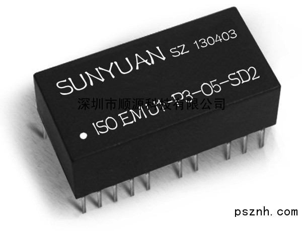 SunYuan DIP24 Pin封装ISO EM-SD系列,模拟有源信号隔离变送器配电器是一种磁电隔离的混合集成电路。该IC支持单端信号及差分信号输入,且内部在同一芯片上集成了一个多组隔离的DC/DC变换电源和一组磁电耦合的模拟信号隔离放大器隔离变送器。特别适用于:0-10mV/0-20mV/0-75mV/0-100mV的小信号放大及0-5V/0-10V/0-1mA/4-20mA等标准信号的隔离变送。它采用磁电偶合的低成本方案,主要用于对EMC(电磁干扰)无特殊要求的场合。该芯片的输出的隔离电源除了为内部放大电路供电外,还可以向外提供一组高负载能力的 (最大40mA) 隔离稳压电源和两个基准电压源,可供外部电路扩展用,如电桥电路、基准电路等。SMD工艺结构及新技术隔离措施使该器件能达到:辅助电源、信号输入/输出、配电电源之间3000VDC四隔离。并且能满足工业级宽温度、潮湿、震动的现场恶劣工作环境要求。